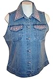 Christine Alexander Swarovski Crystal, Dual Top Pockets, Light Denim Vest - Crystal & Pink Pearls