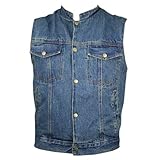 The Xelement MDV-220 Denim Vest is made of durable 100 % cotton denim. It features a mandarin collar, front snap-button closure, vented, blaze-orange mesh lining, two hand pockets, two chest flap pockets, and one interior pocket. ...Read more